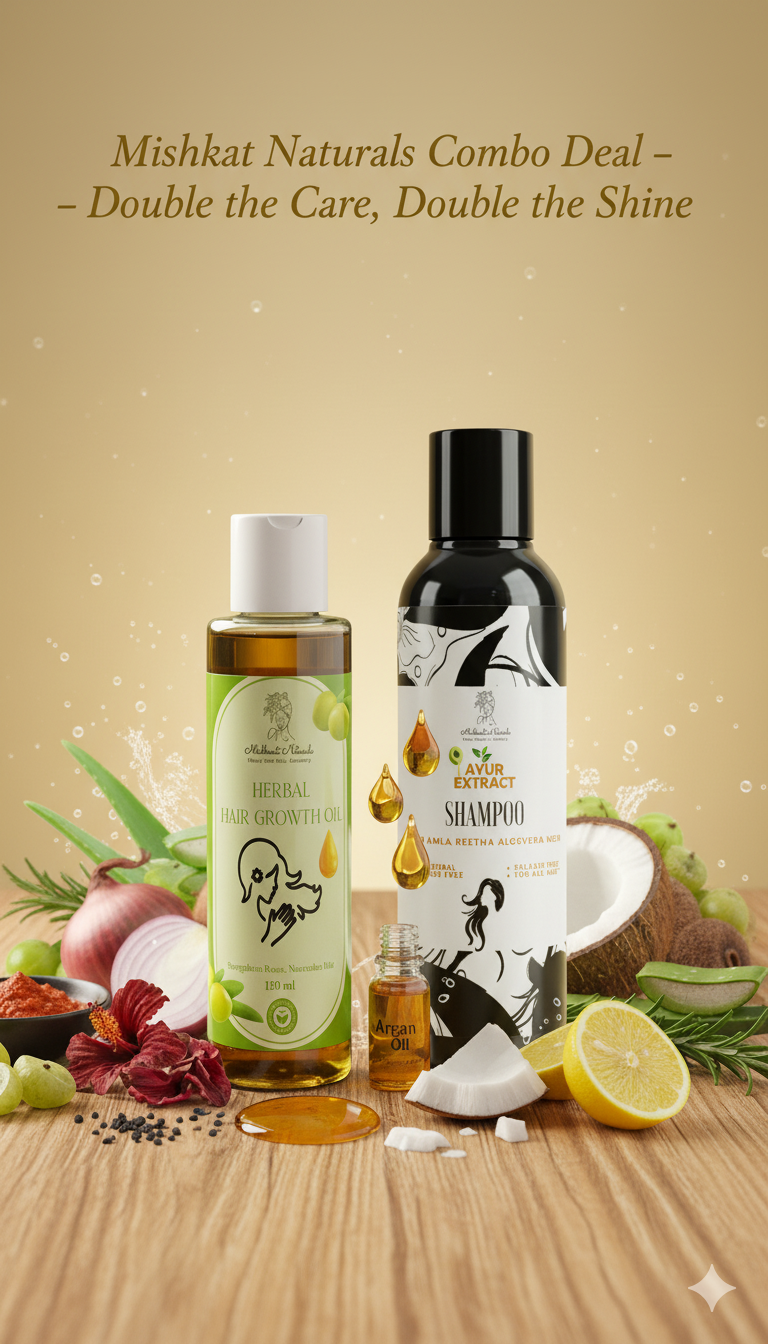 Herbal Hair Care Combo – Ayur Extract Shampoo + Hair Growth Oil | Mishkaat Naturals